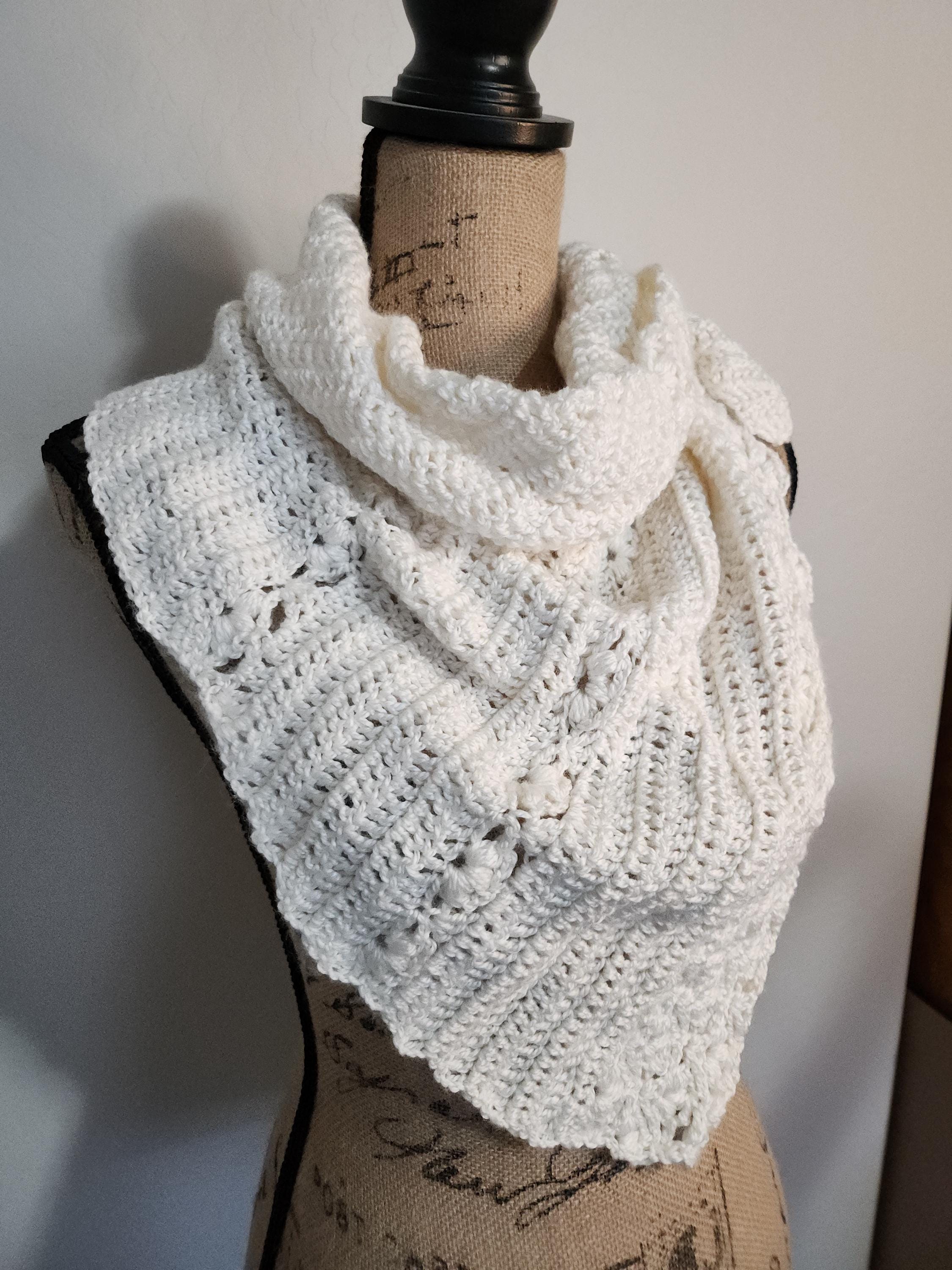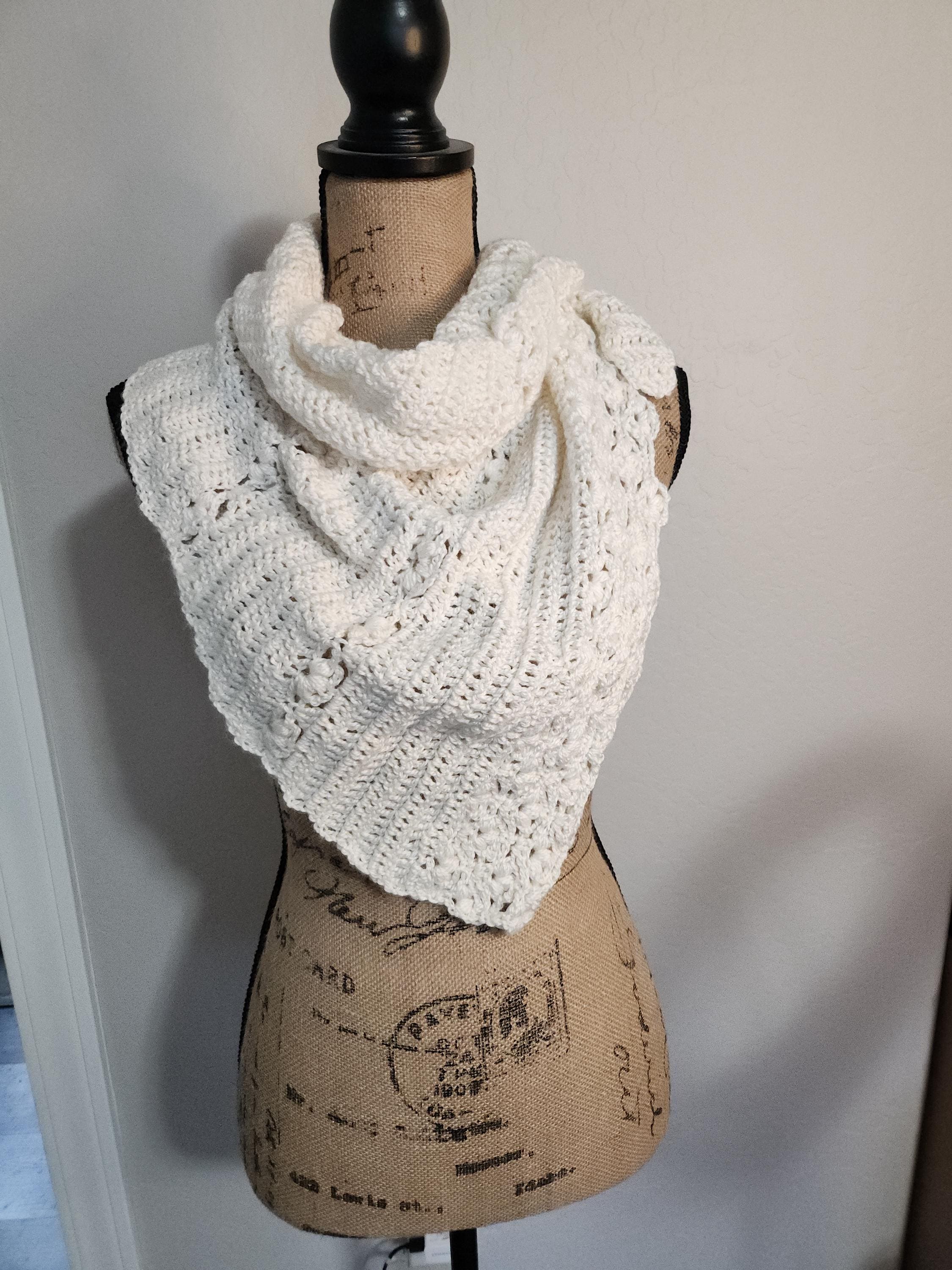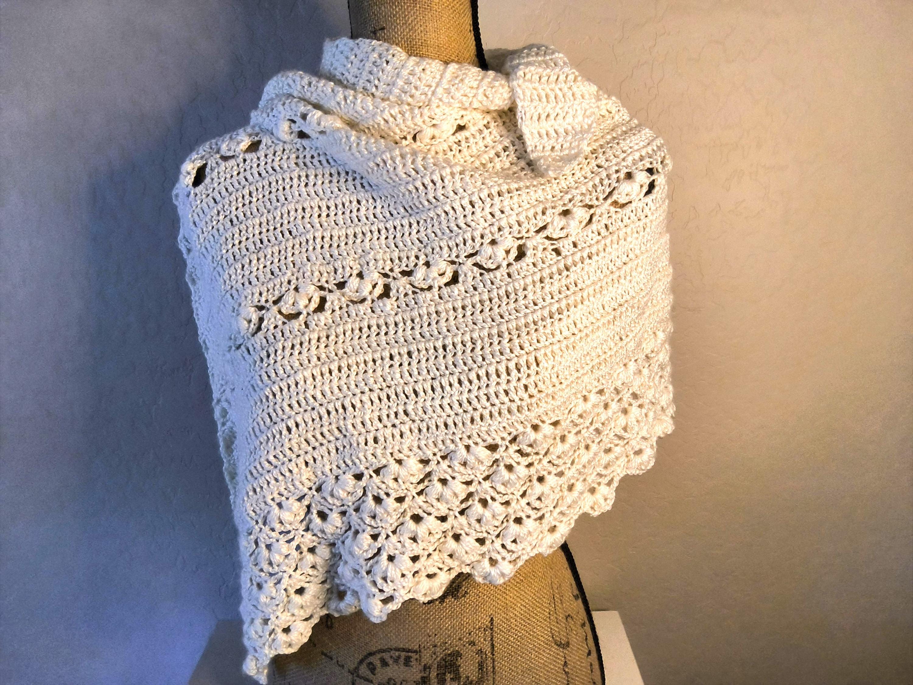 100% acrylic yarn with a pearlized shine to it. Washable and dryable on cool water temp and low heat to dry. Length approximately 47" and width approximately 33". Dressy or casual wear delicate pattern design.